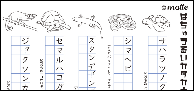 ア行のはちゅうるいカタカナの練習をしてみよう。 ダウンロードして印刷してね。